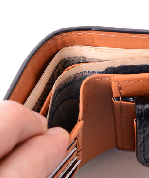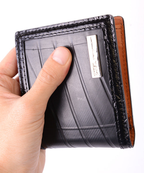 이 프리미엄 2단 지갑은 일본 장인 정신의 정점입니다. "sukku"(thinning)라는 특수 공정을 사용하여 차체를 견고하면서도 가볍게 만들고 타이어 튜브로 마무리합니다. 매우 높은 수준의 기술이 요구되기 때문에 이 제품을 만들 수 있는 장인은 소수에 불과합니다. 코인 케이스는 2개의 수납 공간으로 나누어져 있어 쉽게 보고 꺼낼 수 있습니다. 지폐 수납공간도 2개의 공간으로 나누어져 있어 분류와 보관이 용이합니다. 4개의 카드 포켓 외에 2개의 프리 포켓이 있습니다. 최대 10장 이상의 카드를 보관할 수 있습니다.