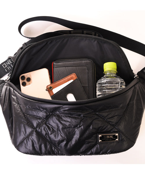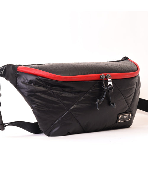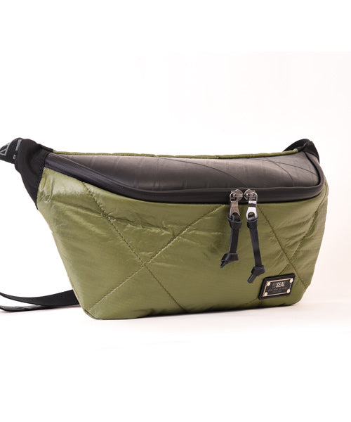 후지쿠라 패러슈트를 퀼팅한 약 200g의 초경량 허리 가방입니다. 500ml 페트병과 장지갑도 쉽게 수납할 수 있습니다. 어깨는 SEAL의 고품질 일본산 Jacquard 테이프로 제작되었습니다. 스플릿 스트랩 디자인으로 사이즈 조절 및 탈착이 용이하며, 허리에도 안정적으로 착용할 수 있습니다.
