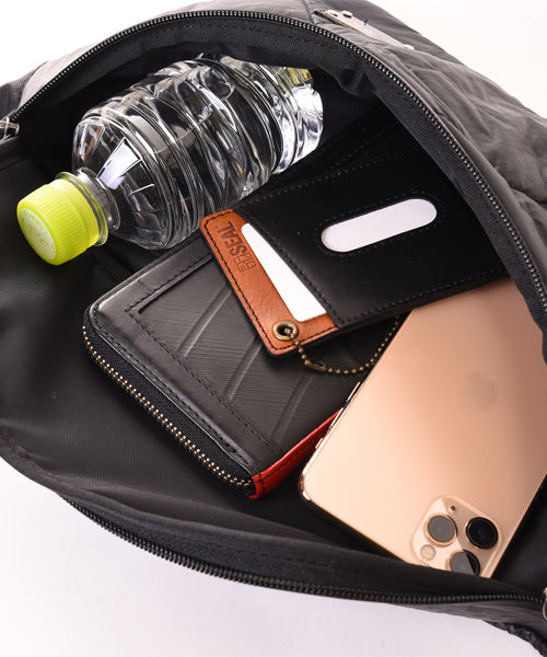 들고 있다는 사실을 잊을 만큼 가볍고 튼튼한 L 사이즈 허리 가방.