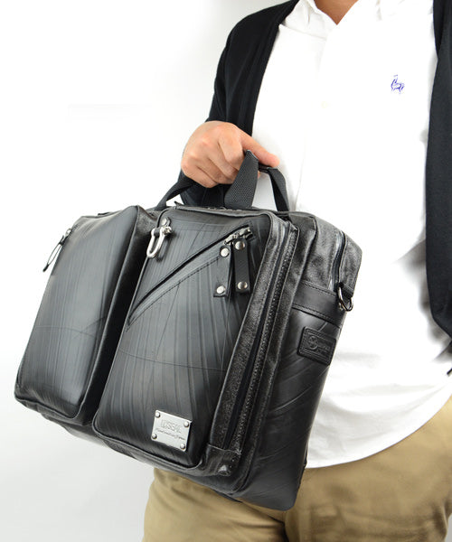 해상자위대가 사용하는 최강의 화포인 모리노 한푸를 소재로 한 3WAY 타입의 비즈니스 가방. 제작이 어려운 두 가지 소재를 국내 장인들이 하나하나 정성스럽게 만들어 구현한 일품의 일품입니다. 손으로 들거나 어깨에 메거나 백팩으로 들 수 있는 편리한 3way 타입의 가방입니다. 각종 수납 포켓을 탑재하고 있어 노트 PC(Mac book pro 15inch)를 수납할 수 있습니다. 방수 지퍼를 사용하여 방수 성능을 획기적으로 향상시켜 높은 방수성을 자랑하는 제품입니다.