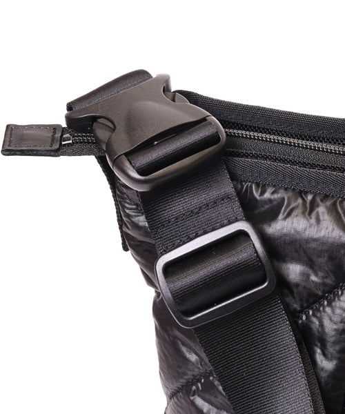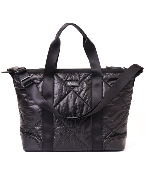 Clean, lightweight, authentic tote made of quilted 'Fujikura Parachute'. Storage capacity for B4-size items. The handle is just the right length for hanging on the shoulder, and the shoulder belt is also equipped, so you can carry it by hand, over the shoulder or on the shoulder without feeling stressed. The shoulder belt can be stored inside when the buckle is removed, allowing you to carry it neatly.