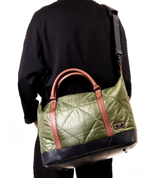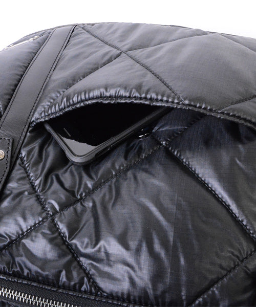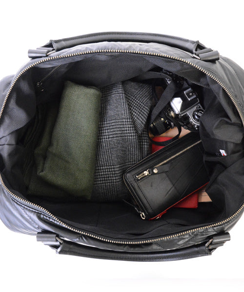 This lightweight Boston bag is made of quilted Fujikura parachute, which is also used by the Self-Defense Forces. The extremely thin and lightweight parachute material is bonded by Japanese craftsmen, and then quilted. It has a surprisingly light weight of 900g despite its large capacity of approximately 26 liters. The bag's size, which is calculated for everyday use as well as one- to three-night trips, is very appealing. It comes with an original dial lock, shoulder belt included, and various other features.