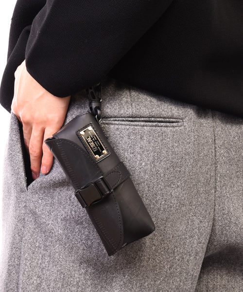 A special glass case made of tire tube protects your valuable glasses from external shocks. The glass case is equipped with a special carabiner, which can be easily attached to belts, bags, etc. The soft interior and the nose stand fit various types of glasses securely. The glass case grips firmly without wobbling inside.