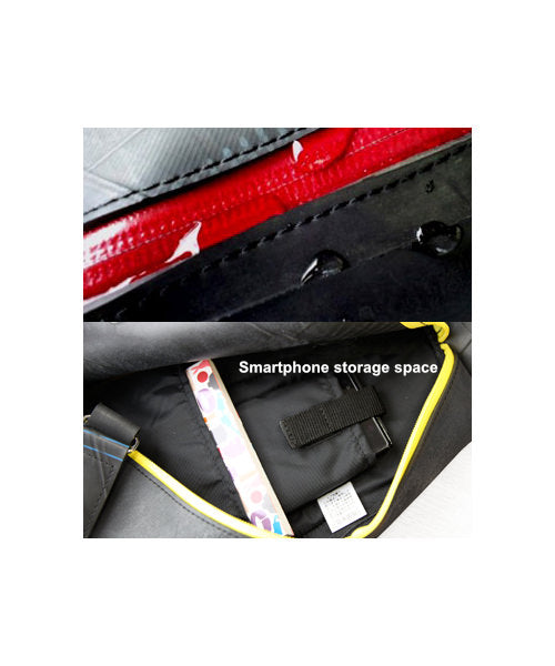 The one-shoulder bag with an overwhelmingly unique spiral shape is now available in collaboration with Morino Hanpu! The spiral form, created by utilizing the elasticity of the tire material as it is, is not only tough but also has a beautiful flowing form. The smart one-shoulder design and ample storage capacity for shirts, books, and other items make it ideal for everyday use or small outings. The back of the bag has a cushion to reduce stress at the time of use. It also has a cell phone pocket inside and an open pocket where you can put maps and other items.
