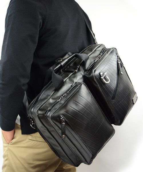 A 3-way type business bag made of Morino Hanpu, the strongest canvas used by the Maritime Self-Defense Force. This is a gem of a product realized by domestic craftsmen carefully crafting one by one from two materials that are difficult to manufacture. This convenient 3-way type bag can be carried by hand, over the shoulder, or as a backpack. It is equipped with various storage pockets and can hold a notebook PC (Mac book pro 15inch). The use of a watertight zipper dramatically improves its waterproof performance, making it a highly waterproof product.