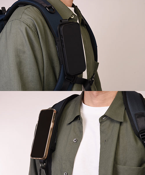 By attaching it to a backpack belt, it supports hands-free shooting while walking. It can also be used to hold a smartphone in place using a pole or plastic bottle, etc., allowing for a wide range of uses depending on your ideas. Furthermore, by using the included shoulder belt, it can be transformed into a shoulder bag.