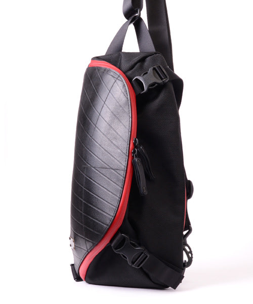With the expansion function, it can be freely adjusted to fit your luggage. While simple and lightweight in construction, it has a larger capacity than you might imagine. The bag fits snugly to the body with a movable shoulder belt that doubles as a handle and a cushioned body. It reduces stress on the body to the maximum extent possible. The entire bag is covered with watertight zippers, tire tubes, and waterproof nylon.