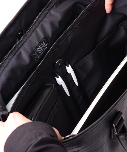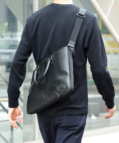 Expandable model of slim-type business bag with approx. 10 cm expansion. The main compartment has an expansion function of approximately 10 cm, allowing it to handle an increase in luggage without problems. It is a convenient 2-way type that can be used as a hand-held or shoulder bag. It is equipped with bottom studs and a bottom plate on its surface, and when expanded, it can be used as a freestanding business bag. It is equipped with a variety of storage pockets and can be subdivided according to your personal style. The storage is divided into three compartments for functional use. The handle is made of high quality genuine Japanese leather. It is neither too hard nor too soft, and feels comfortable in the hand.