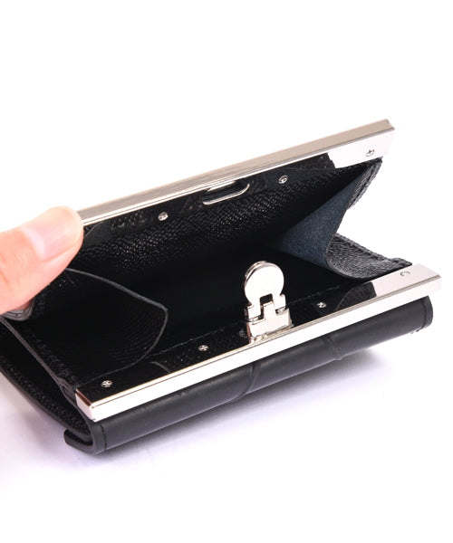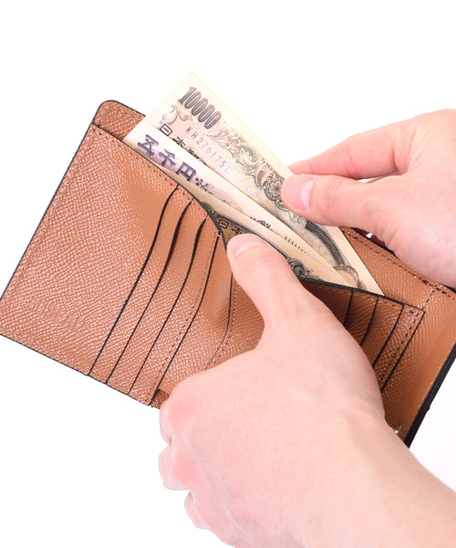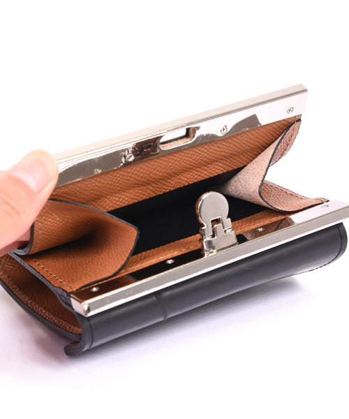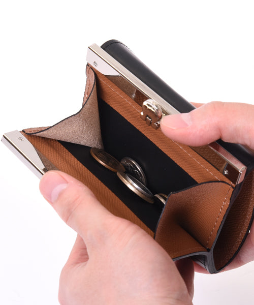 This robust bifold wallet is made by Japanese craftsmen with great care. Made with frame hardware, the robust construction will not lose its shape and can be used for years or decades. A coin purse with a unique straight gama-guchi-guchi frame. The distinctive opening/closing method makes inserting and removing coins a pleasure.
