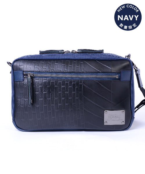 This easy-to-use shoulder bag is useful on holidays or when traveling. It is large enough to comfortably hold a passport, long wallet, etc., and is also very useful as a sub-bag. It is also convenient for dividing your luggage into smaller compartments with its various compartments such as a net pocket and a pen holder. Six zipper pockets, including a main compartment and a sub-compartment, provide excellent security. The simple form of the bag allows it to be used in any style, and the tire tube on the surface protects the bag from water and dirt.